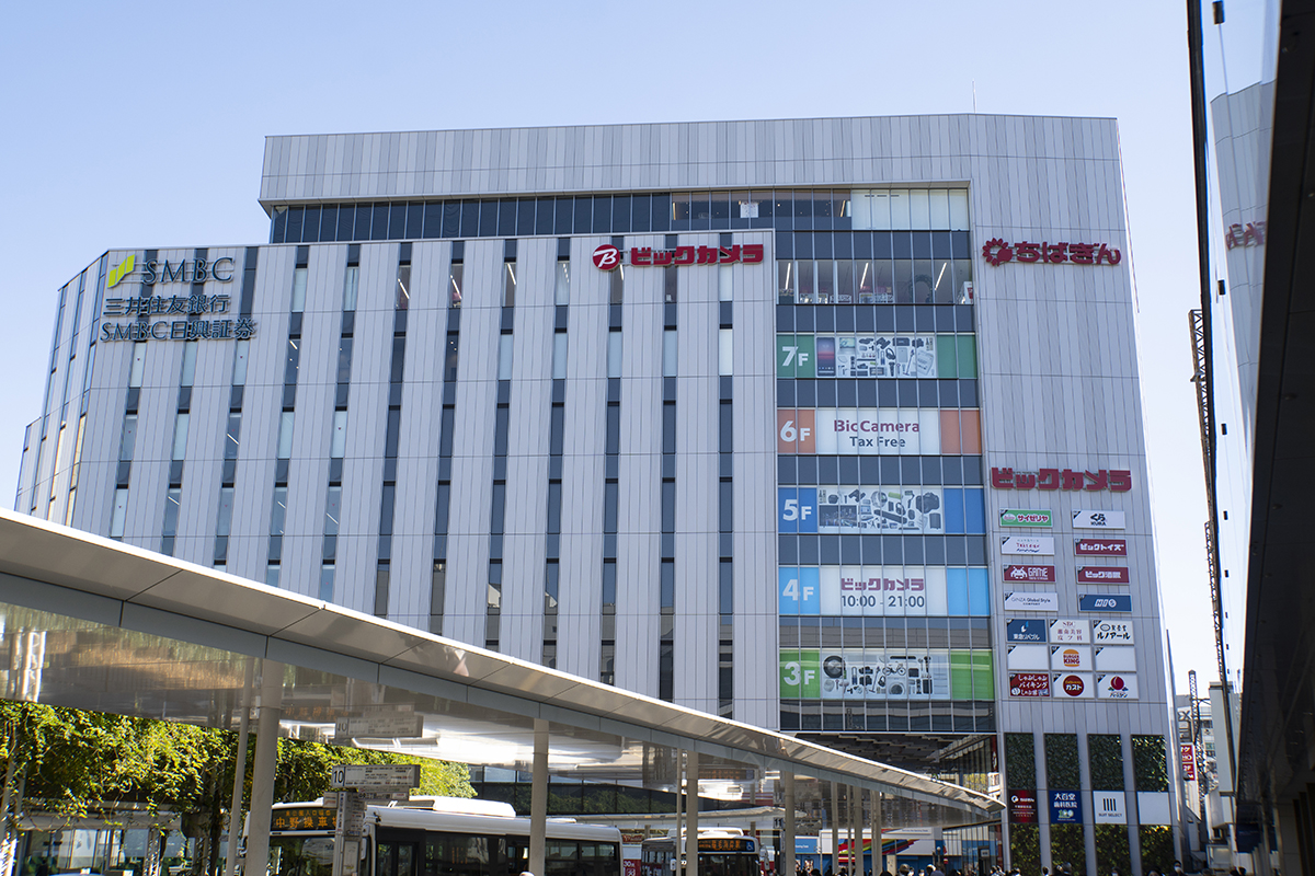 デッキを降りて富士見本通り(繁華街)方向へ直進します。